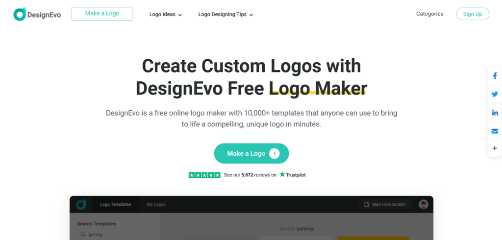 The next branding software with an easy-to-use interface and useful design tools is DesignEvo. It helps entrepreneurs create a visual identity with built-in templates in minutes.